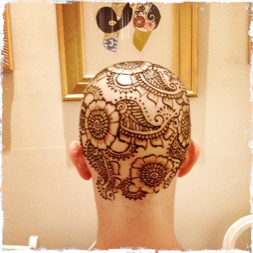 i’m also continually thankful for family and friends, whether it’s here on caringbridge, in the city or across the miles. it might be meals, letters, visits, texts, trips to pier 1, or getting henna-ed together–it all is deeply meaningful. and that last experience, getting my head painted with henna, was totally awesome. i got more than a few double-takes out and about today, with people likely being initially afraid of me for being so hard core to tattoo my whole head. but the interactions–“what’s the occasion for the henna?”–were way more positive than i usually get in public (e.g., eyes averted, fear, discomfort). art is beautiful, and now i get to wear it on my head.