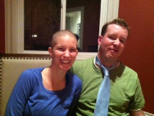 my hair is starting to come in, as you can sort of tell in the picture (mike wanted to get fancy for the portrait). he thinks, from a distance, i still look bald, but up close, it’s a tie between an old man and a baby. he’s pretty accurate. with eyebrows and eyelashes making a reappearance, i’m starting to feel more human, less cancer patient.