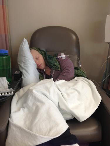 similar to the five stages of grief i’ve shared on the blog last fall, the psychology field recognizes five stages of trauma: outcry, numbness and denial, intrusive re-experiencing, working through, and completion. these aren’t set in stone or necessarily experienced in this order. over the past 8 months, and even today, i can pinpoint going through, or being in, many of these stages. like when i’m frozen and unable to make even the smallest decision. or sitting in disbelief that this is my life and if i think about the reality too long or hard, a pandora’s box will open and i’ll disappear. or when i forget that i had chemotherapy, or cancer for that matter. or in the early mornings when i can’t sleep and instead march through the 5 months of chemo bit by bit in excruciating detail. or feel like many days, i’m levitating above myself just like watching a movie. i found this attached picture mike snapped during one of my infusions. i’m not recognizable.