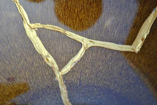 you may have heard of the centuries-old japanese art of pottery repair, kintsugi. if a piece of pottery cracks, the craftsmen repairs it with gold, highlighting the fractures and seams. it produces these curiously stunning, imperfectly perfect objects.